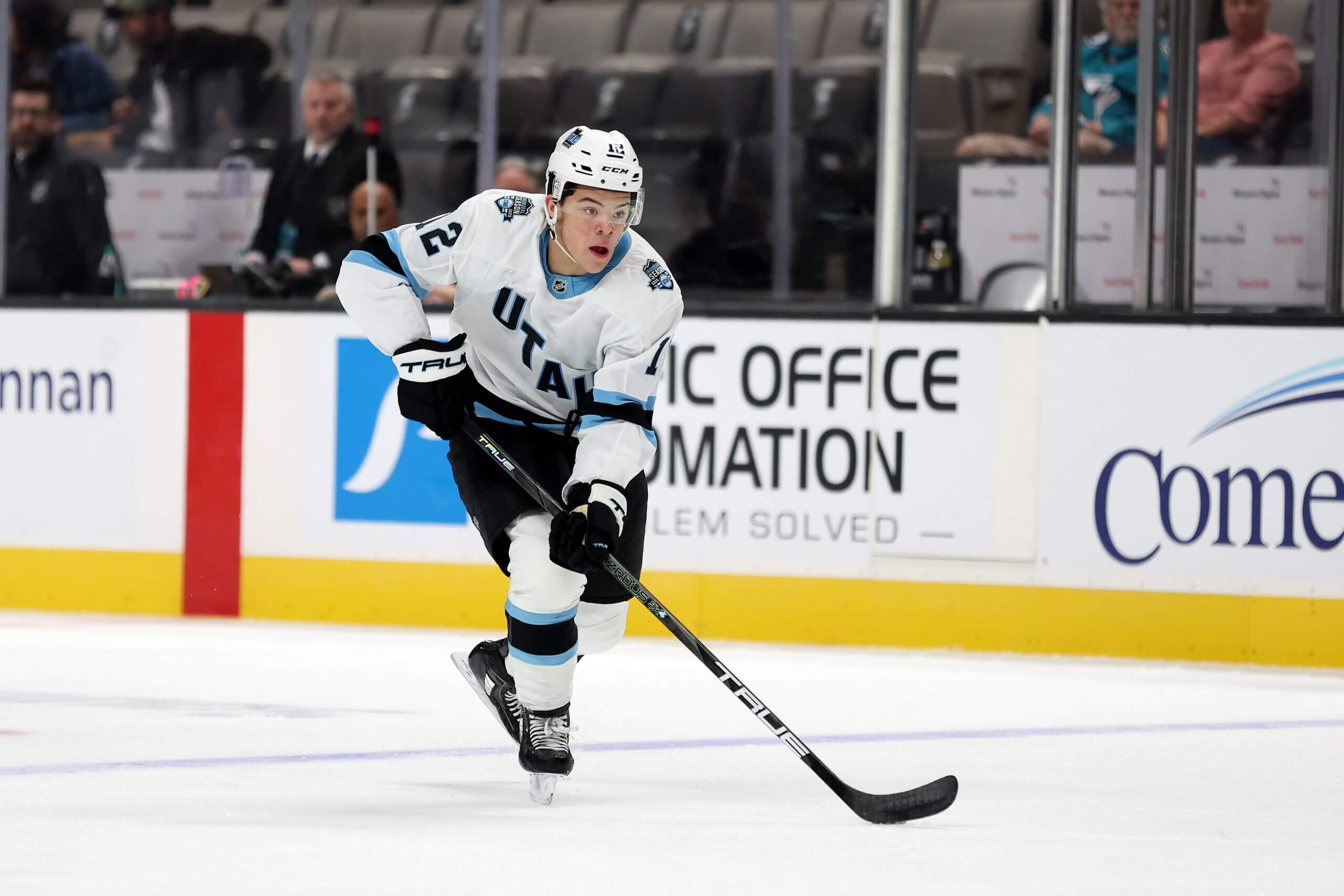 Celebrini is an incredibly well-rounded center. He has a very powerful stride with a quick twitch in his first few steps and can get by a lot of defenders. He’s extremely skilled and creative with a high-end offensive sense. Celebrini makes a ton of difficult plays with the puck on the move, in tight areas and from a standstill. He has a bullet shot from range as well. He’s average-sized, but Celebrini is highly competitive, wins a lot of battles and projects as a premier two-way matchup center in the NHL. He has all the makings of a potential superstar that you can build a contender around.