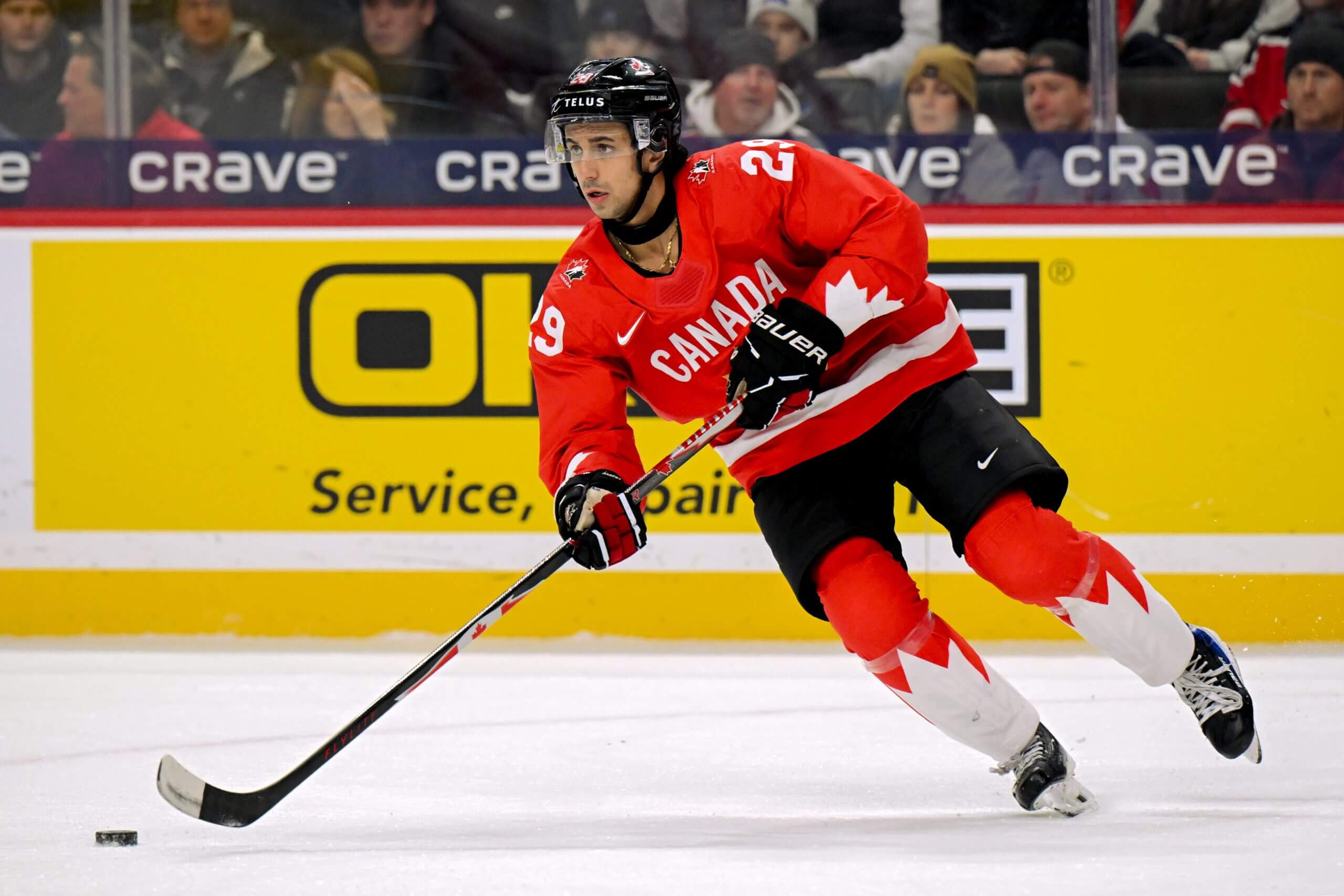 McQueen is a 6-foot-5 center who can skate and has legit offensive skills. His reach and hands can let him break shifts open, especially when he’s attacking with tempo. I wouldn’t call him a truly high-end playmaker, but he sees the ice well, makes difficult plays and can create in the high percentage areas. McQueen is big, but what scouts love is that he uses his big frame. He has a legit edge in his game and projects as a hard-to-play-against top-six forward/second-line center.