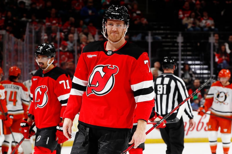 Anaheim Ducks v New Jersey Devils NEWARK, NEW JERSEY – DECEMBER 13: Dougie Hamilton #7 of the New Jersey Devils in action against the Anaheim Ducks at Prudential Center on December 13, 2025 in Newark, New Jersey. The Devils won 4-1. (Photo by Sarah Stier/Getty Images) (Sarah Stier/Getty Images)