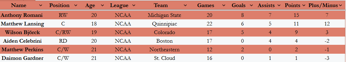 Surpassing him in total points is Matthew Lansing, Vancouver’s 2025 seventh-round pick, who now has 11 points in 22 games after scoring twice over the weekend. Despite primarily seeing fourth-line usage throughout the year, Lansing’s recent play has earned him elevated minutes, including a season-high 17:11 over the weekend. He currently sits third on Quinnipiac with a plus-12 rating for the 9-3-2-0 Bobcats.