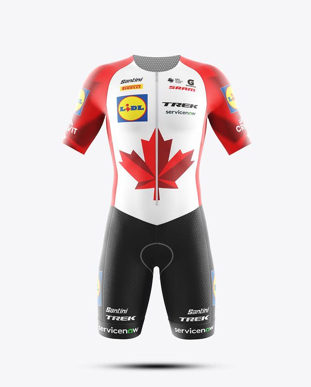 An alternative national champion kit for Derek Gee-West by Montreal designer Anthony Debauche. Image: Courtesy Anthony Debauche