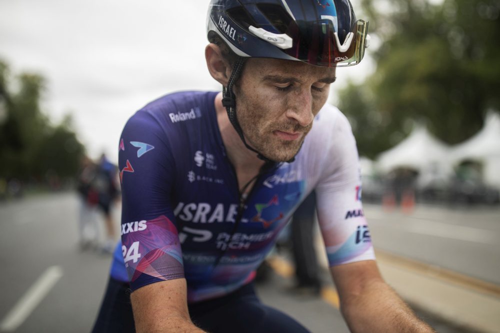 Osgoode, Ont.’s Derek Gee-West of Israel–Premier Tech collects himself shortly after finishing the 2023 Grand Prix Cycliste de Montréal. Image: Nick Iwanyshyn