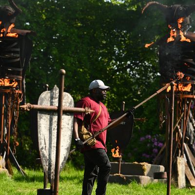 But before any banishing can happen, they have a mission to get through, led by Alan, who’s dressed like a scarecrow going to prom. They have to set ablaze ten effigies with spears, and for each one they light up, they get to pick someone whose shield will also burn. This, of course, seems risky given Alan’s straw-lined blazer, but I’m sure production made his safety a priority. After all, without him, who would bring Lala to the set?