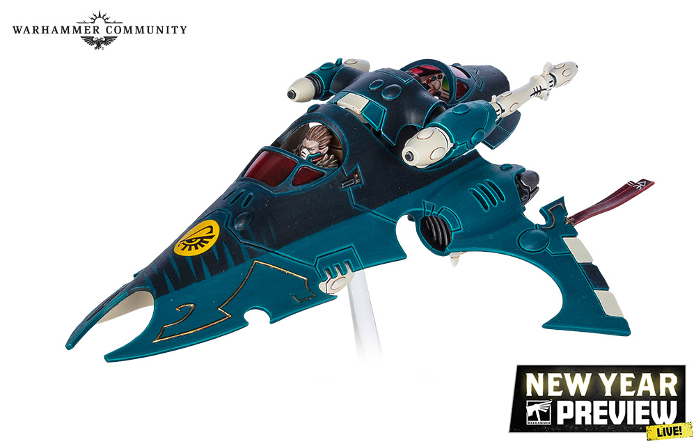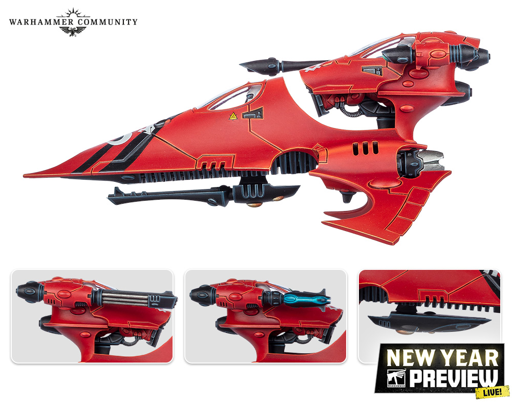 You’re seeing right – the Vyper finally has a fresh new kit, and it’s a stunner. The swooping curves bring it much more in line with the current Aeldari aircraft and jetbike designs, with a completely redesigned gun pod that can be positioned raised to fire directly forwards or nestled down facing backwards to preserve the vehicle’s sleek silhouette.