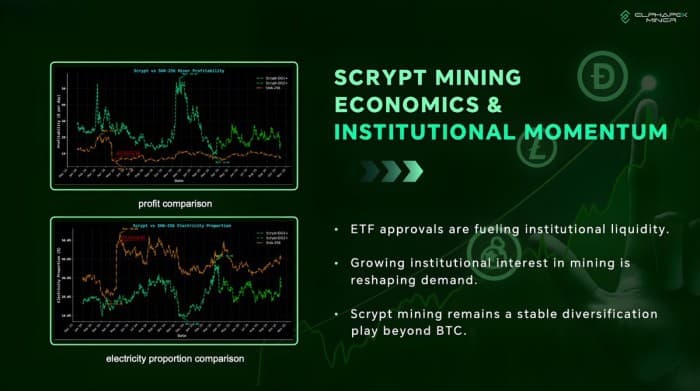 While Bitcoin miners have dealt with rising difficulty, higher capital intensity, and margin pressure following the halving, Scrypt economics have held up better. Company materials show that Scrypt mining delivered stronger realized profitability than SHA-256 mining for much of 2024. And it’s all because of the structure.