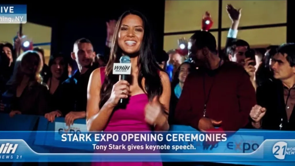 Initially, Olivia Munn was supposed to have a larger role in Iron Man 2 as a woman named Rebeca, with whom Tony Stark has a one-night stand. That ended up getting cut, but she was kept around and given the smaller cameo role as Chess Roberts, the reporter covering the Stark Expo towards the beginning of the movie.