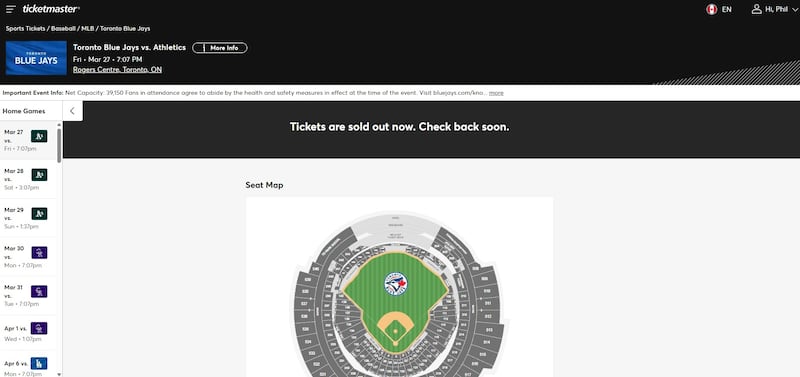 Tickets for the home opener are still available on resale sites like Stubhub.ca, where the most expensive pass will set you back $1,861 for a third-row seat near home plate. The cheapest general admission tickets were going for more than $200.