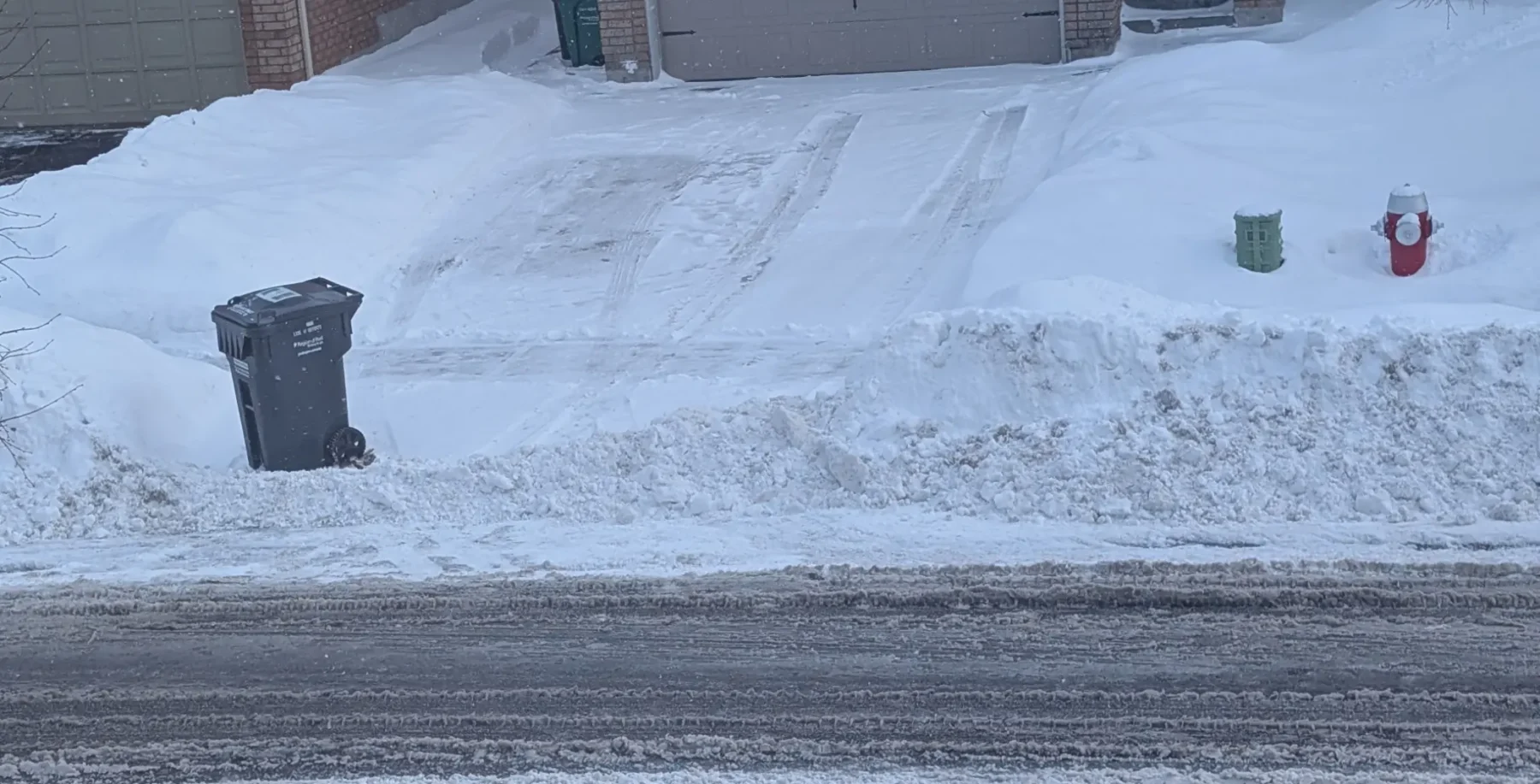 Windrow left by a city snowplow on a Brampton residential street.
