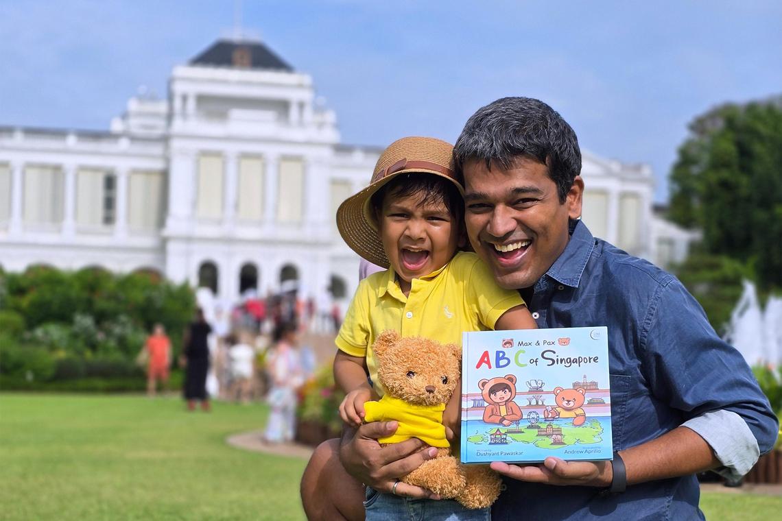 Dushyant Pawaskar, author of Max & Pax: ABC Of Singapore, and his son Advay Pawaskar Ghosh love visiting local landmarks such as the Istana.