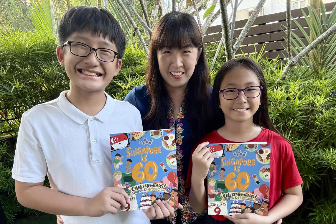Sharon Koh, seen here with her children, authored Singapore Is 60: Celebrate With Us! to commemorate the country’s birthday and also raise funds for the President’s Challenge.