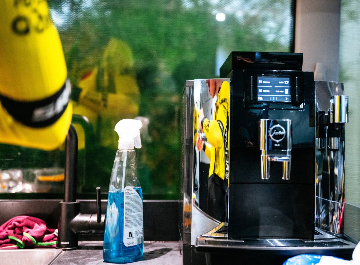 Forget the steering wheel and engine – This is the most important element of the Visma-Lease a Bike team bus. (Photo: Gruber Images)