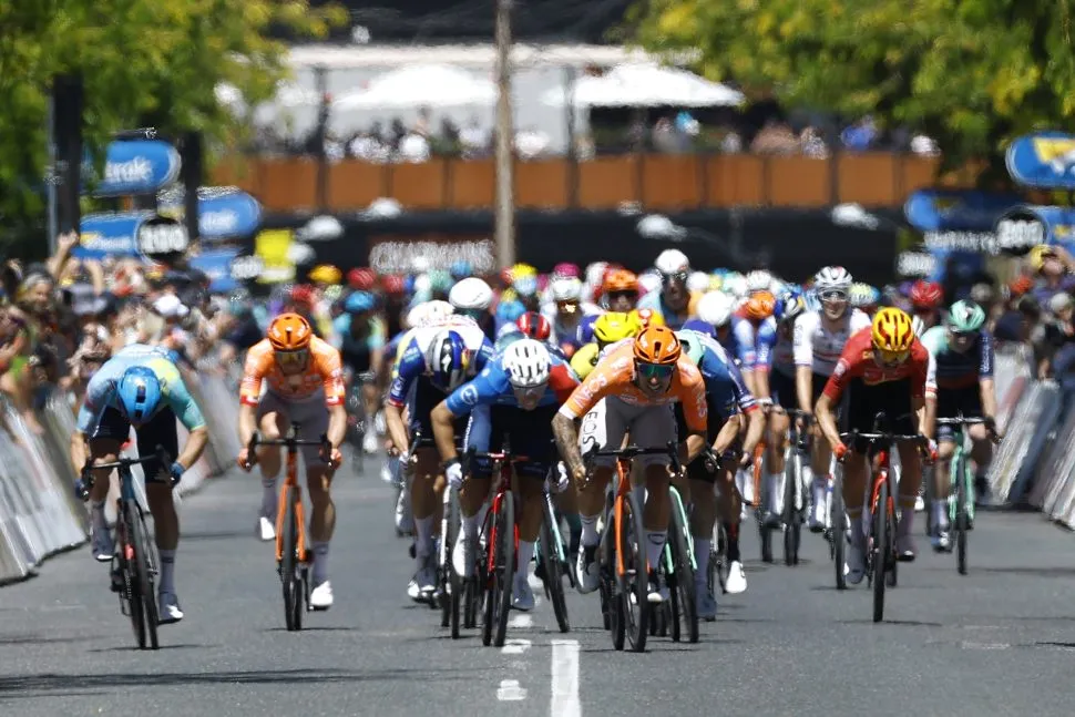 As a result, the overall podium was sewn up early with Vine, Jayco-AlUla’s Mauro Schmid and Australian Harry Sweeny of EF Education-EasyPost making up the top three on GC. The stage finish then became one for the sprinters – a very different dynamic than usual.