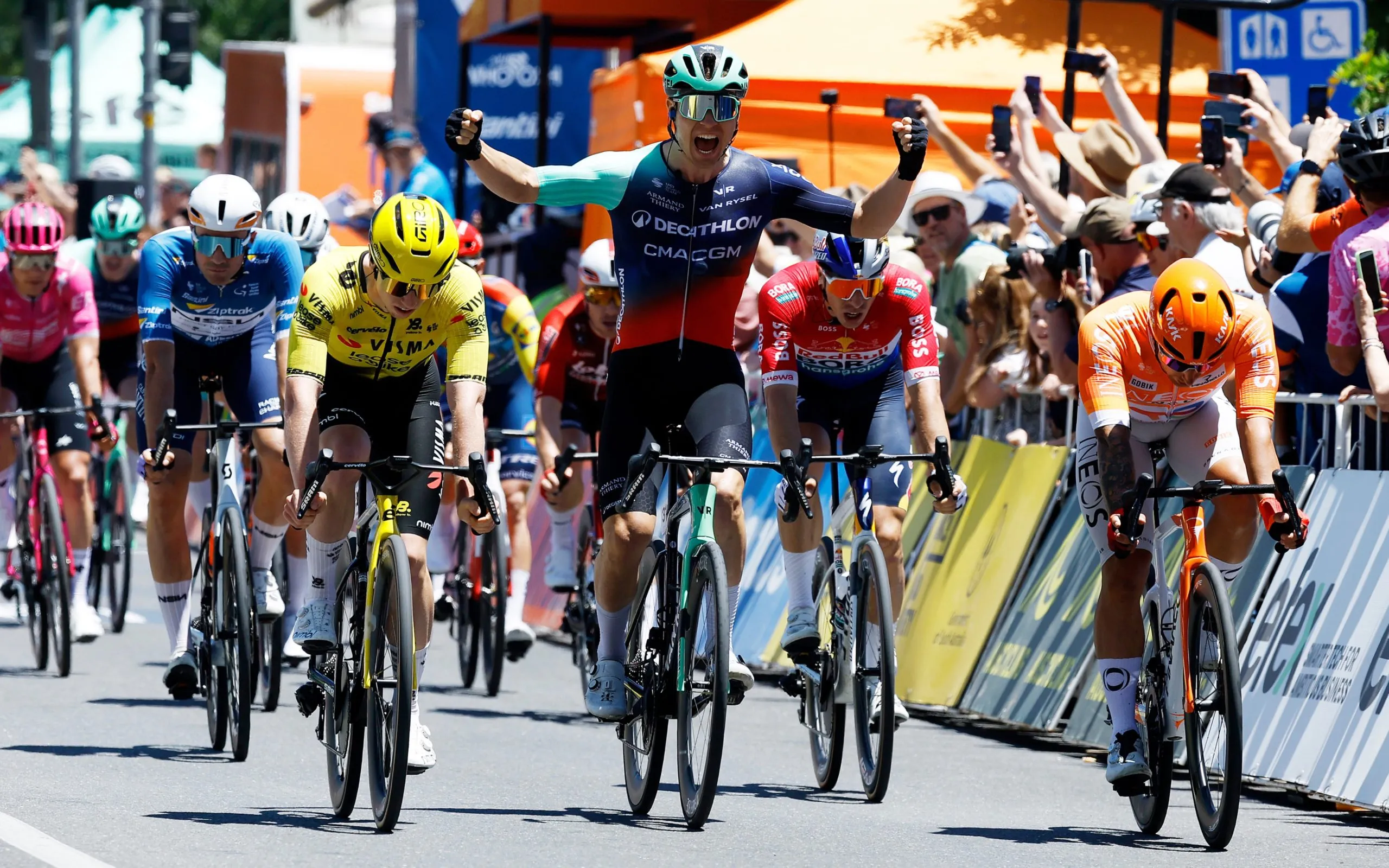 23-year-old Tobias Lund Andresen moved from Picnic-PostNL to Decathlon-CMA CGM over the off-season and claimed his first WorldTour victory on Stage 1 at the Tour Down Under after a brilliant display of teamwork, with a sprint train that looked locked and loaded well before they delivered their man to victory.
