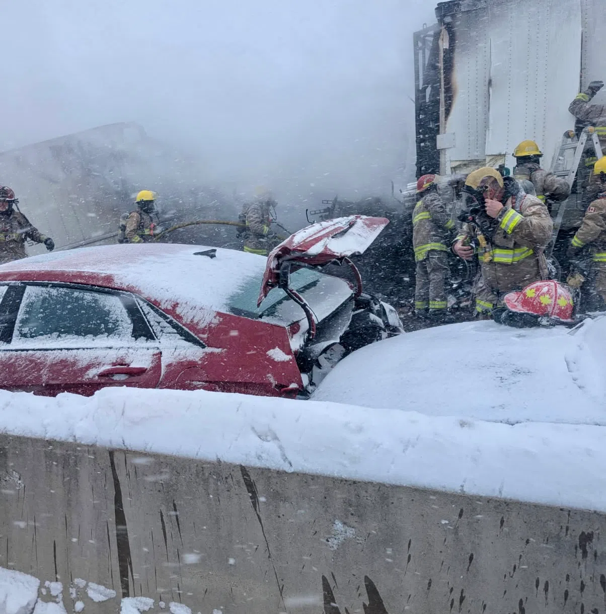 A tractor-trailer caught fire in one of more than a half dozen crashes on Hwy 401 between Belleville and Trenton on Tuesday. (Photo: submitted to Quinte News)