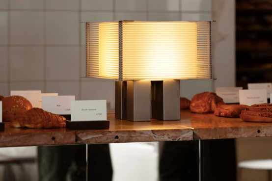 “It is a double-skin lamp: a first layer diffuses, then a second layer enhances, filters, and sculpts the light. The formal vocabulary evokes markers of gyms, dumbbells, machines, straightforward assemblies, exposed metal parts. The square geometry evokes the image of a boxing ring, encircled by elastic ropes. The object is retro-futuristic, almost sci-fi, a small luminous architecture with a technical structure but a warm halo,” says Matthieu Doucet, founder of Imprécis.