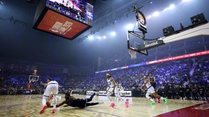 Revolut, Foot Locker, and title sponsor Tissot, were just some of the brands that sponsored the NBA London Game. (Justin Setterfield/Getty Images)