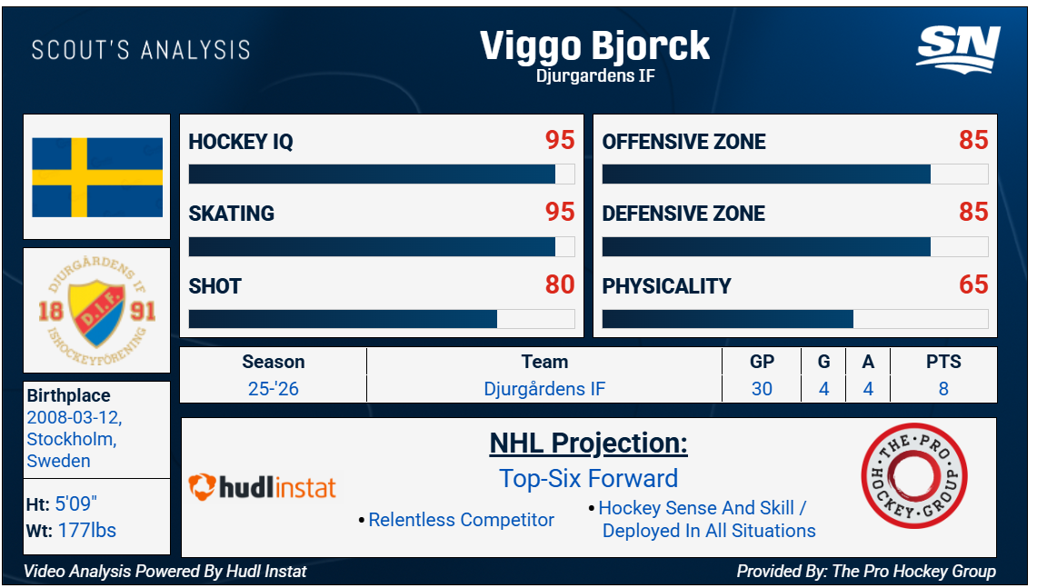 No. 7: Viggo Bjorck, RW, 5-foot-9, 177 pounds, Djurgardens (SHL)