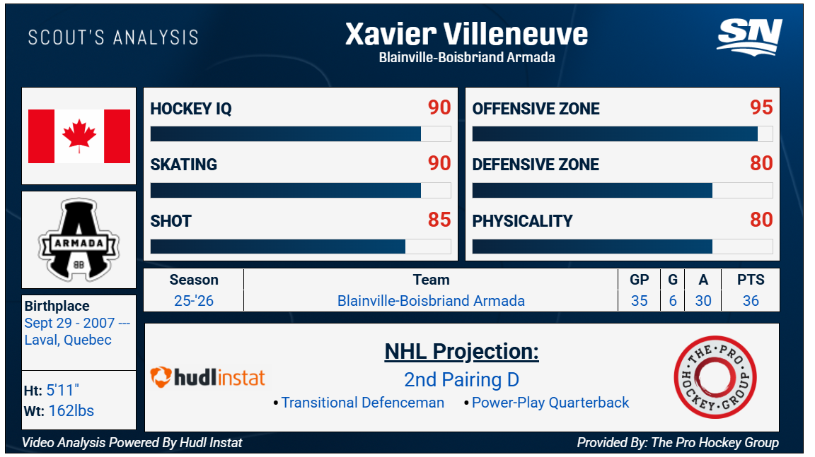 No. 17: Xavier Villeneuve, D, 5-foot-11, 162 pounds, Blainville-Boisbriand Armada (QMJHL)