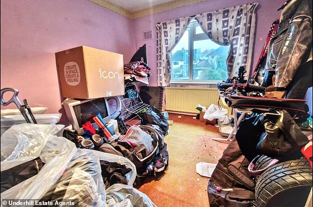 The bestrewn property in Exeter – described as being ‘in need of modernisation’ – was piled high with years of accumulated clutter, with rooms barely visible beneath mountains of belongings.