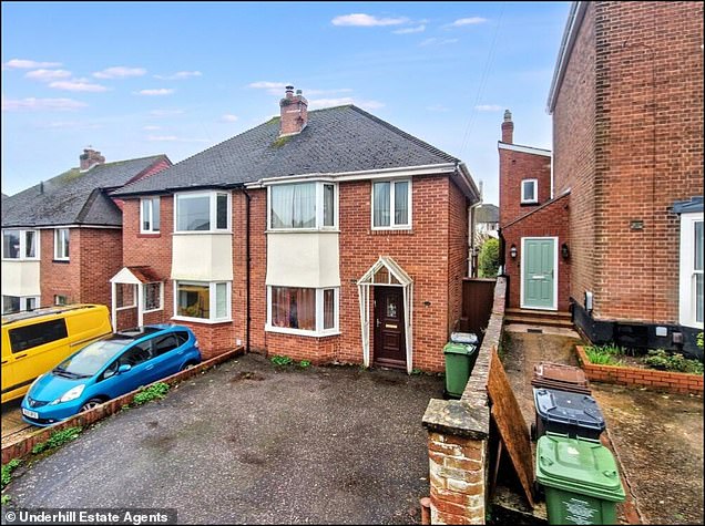 The Exeter listing boasts three bedrooms, gas central heating, double glazing, a driveway for two cars and a large rear garden.