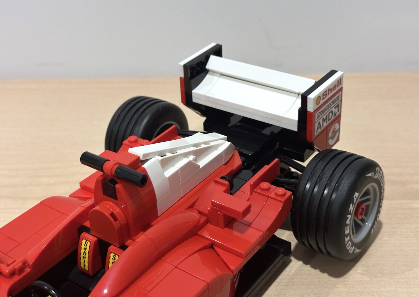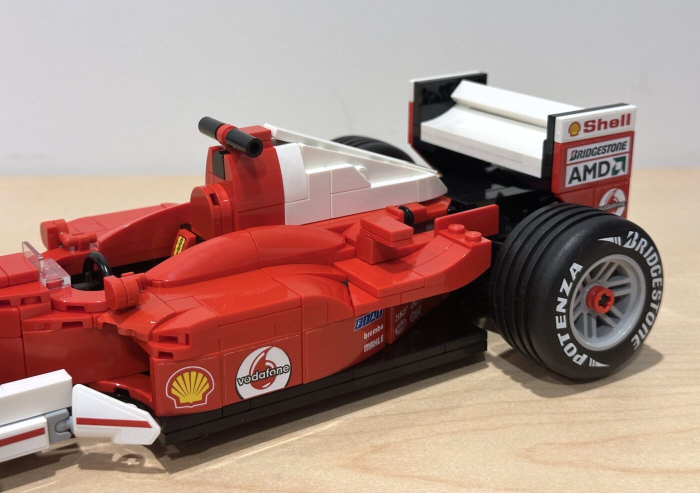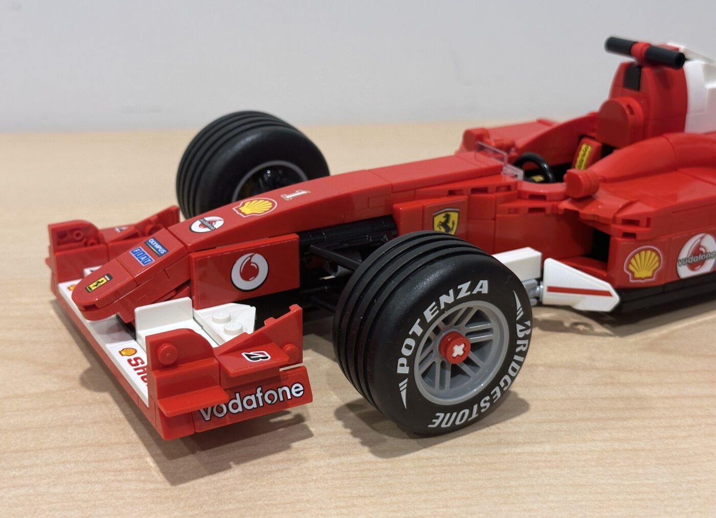 Moving on to the main build, the Ferrari F2004 looks absolutely stunning in LEGO form. The proportions and shaping are accurate to the real-world car, and the colour combination is gorgeous (it’s a Ferrari, for crying out loud).