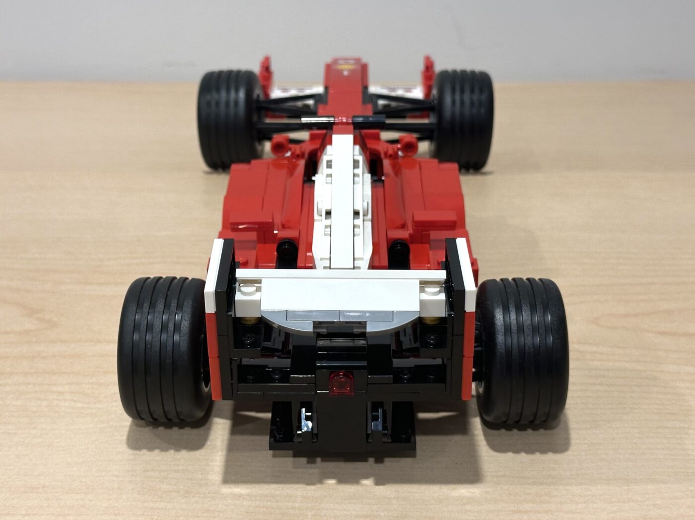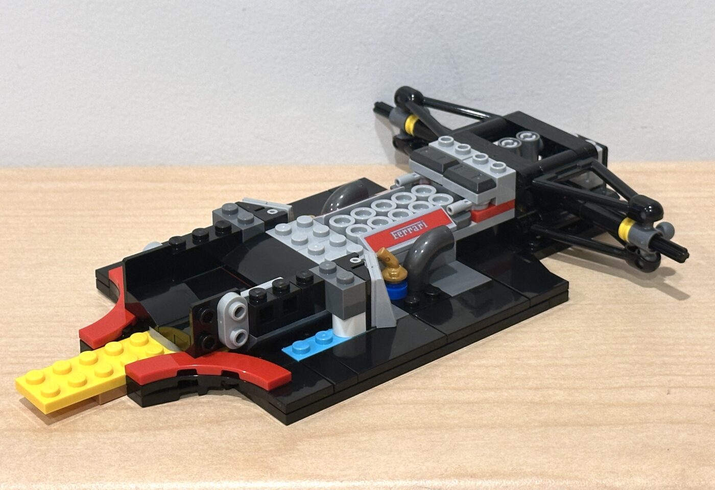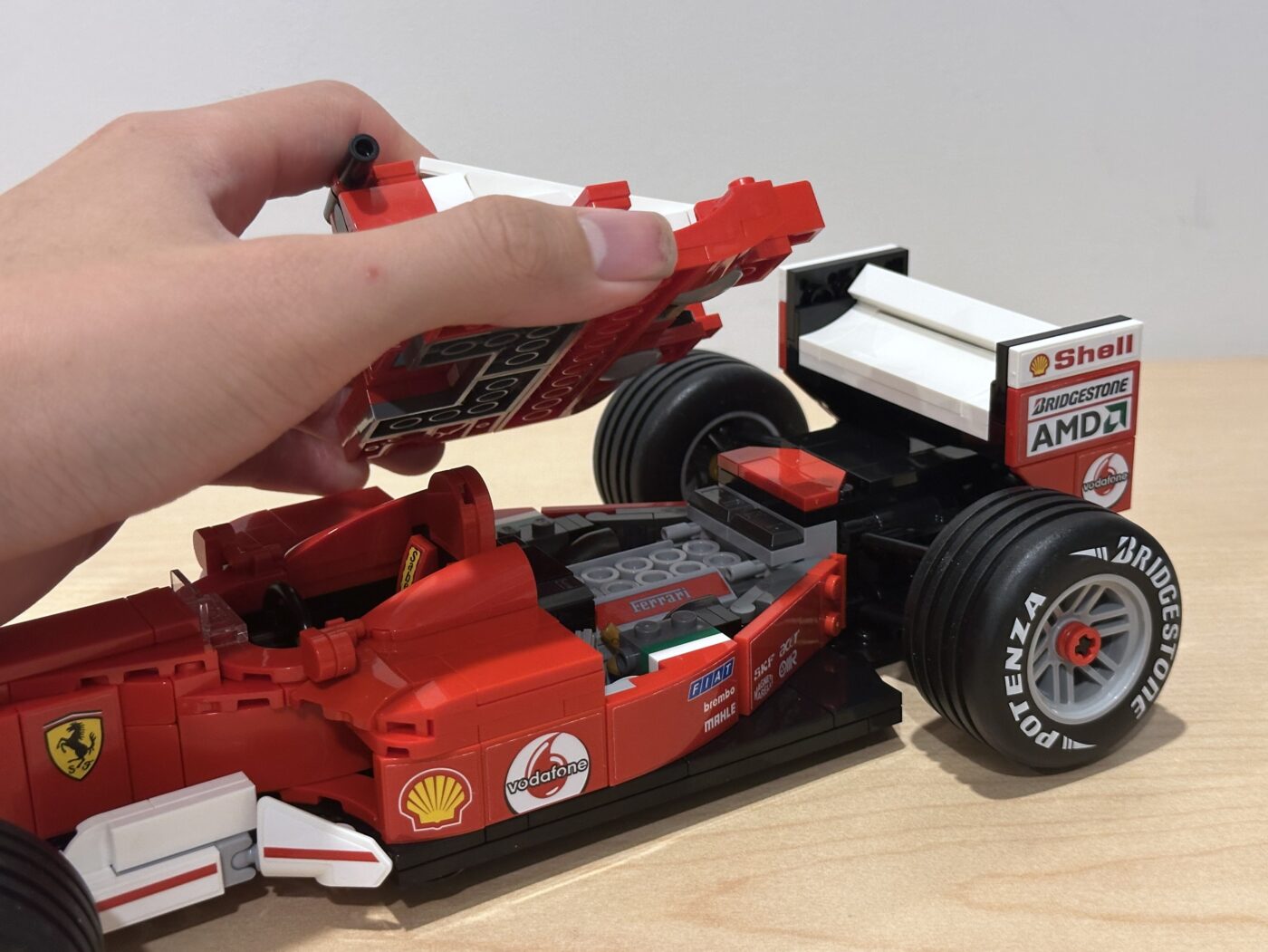 Moving on to the main build, the Ferrari F2004 looks absolutely stunning in LEGO form. The proportions and shaping are accurate to the real-world car, and the colour combination is gorgeous (it’s a Ferrari, for crying out loud).