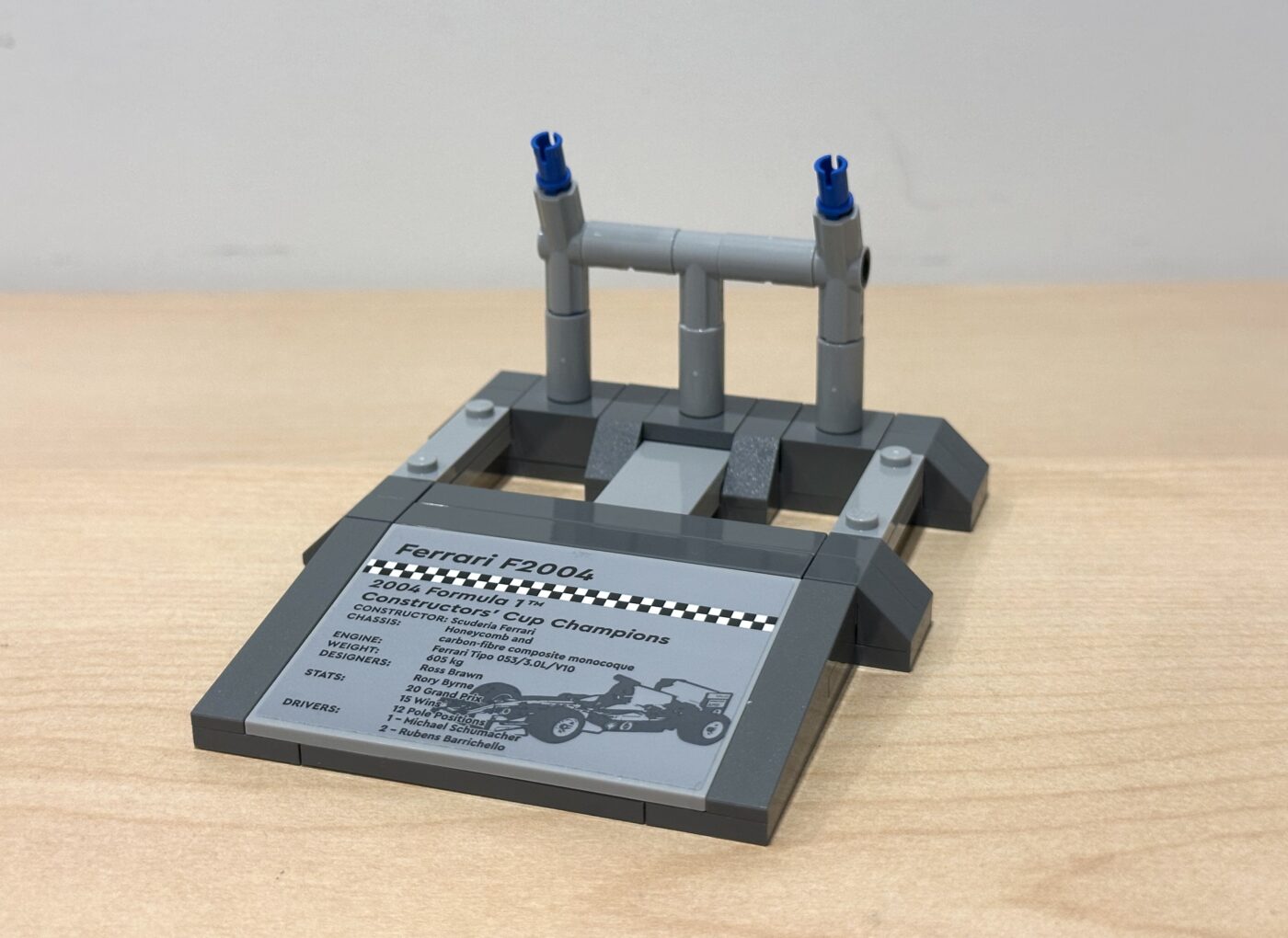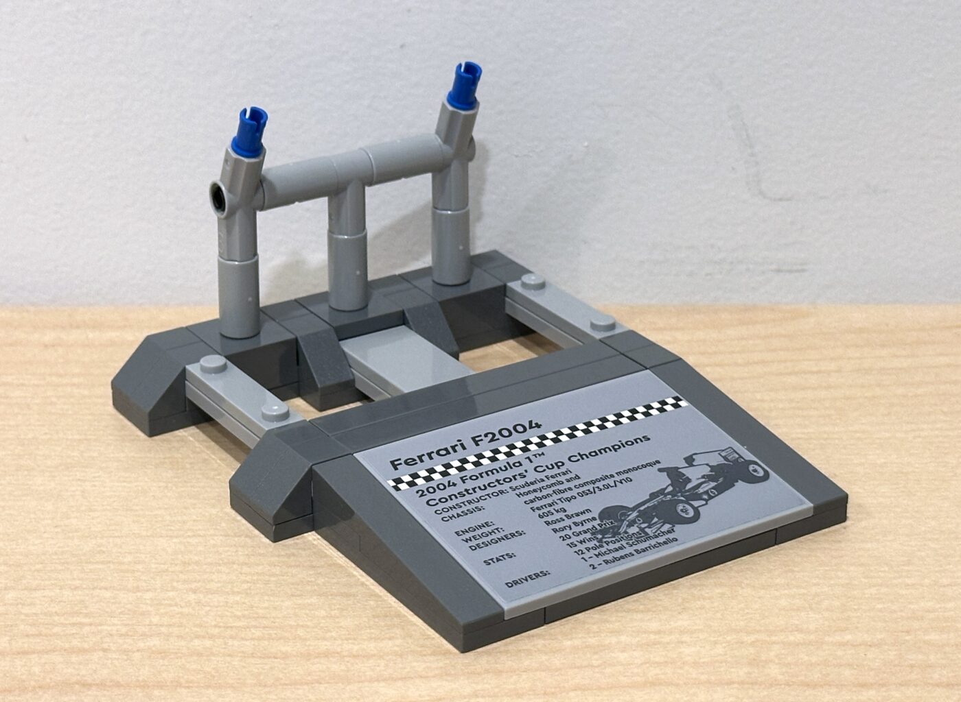The final build is this grey stand with a stickered plaque to hold up the model – it’s basically the exact same design as the ones included with the other two F1 Icons sets, so it’s nothing new.