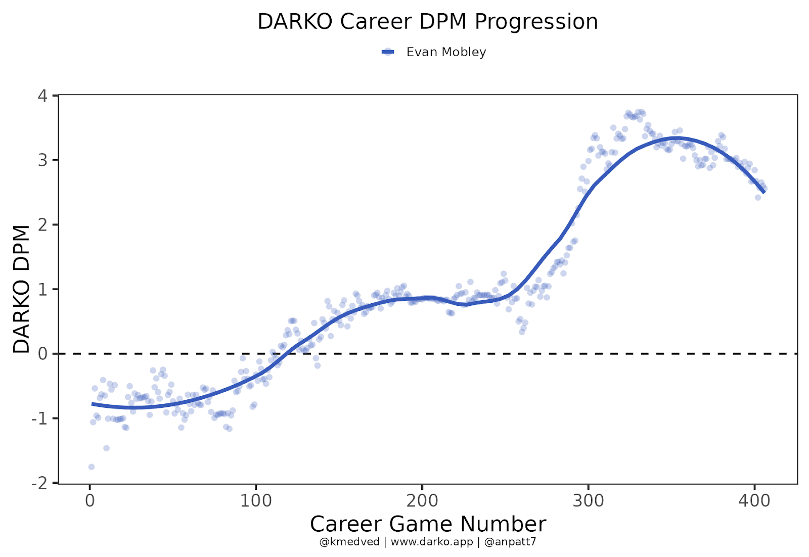 As it stands, though, finding ways to better accentuate and support Mobley could have short- and long-term benefits for Cleveland. Here’s a graph that shows how his daily plus-minus is progressing: