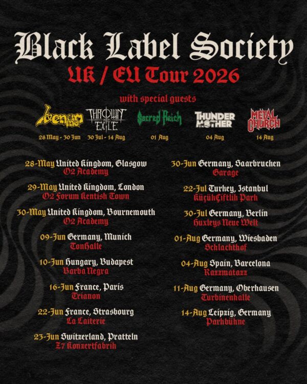 Black Label Society have also announced dates for their UK / EU Tour 2026, launching on May 28 in Glasgow, Scotland, and wrapping up on August 14 in Leipzig, Germany.