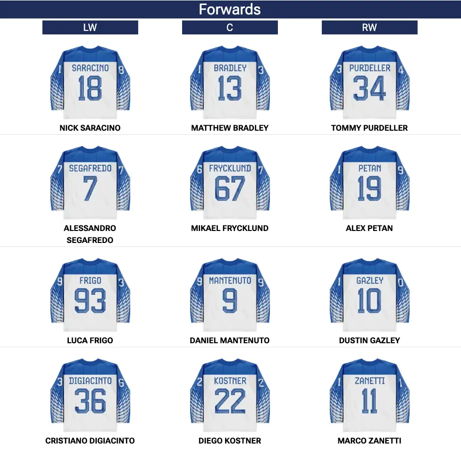 Damian Clara: Although we aren’t sure whether he will get the start tomorrow, Damian Clara is someone to watch closely on an Italian team that isn’t rich with talent, because he is the only Italian-born player on the team that was ever drafted to the NHL – in the second round, 60th overall, to boot. He’s just a young kid, but as the clear best player on the team, and going up against one of the tournament favourites, he should be a busy guy in front of his country.
