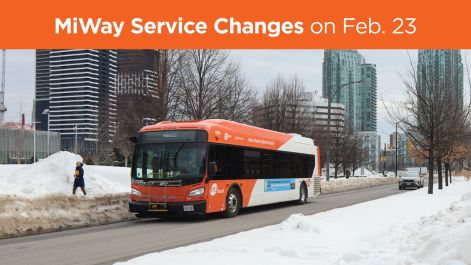 Starting Monday, February 23, MiWay is implementing major changes to service along Dundas Street, affecting connections at Kipling Bus Terminal, University of Toronto Mississauga (UTM) and South Common Centre. Schedules will be adjusted to increase frequency on all routes serving Dundas Street. These enhancements and realignments will improve travel options and strengthen connections to surrounding communities, including Meadowvale, Erin Mills and UTM.