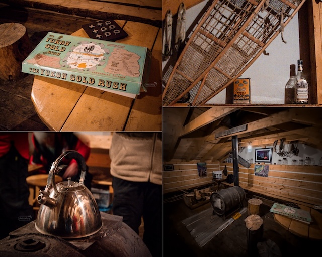 Snowshoes and animal pelts adorned the walls, mugs hung from hooks in the middle of the room by the complimentary beverage and snack stations. The wood-burning stove was crackling and a map on the wall was full of pins representing all of the visitors they’ve had this season alone.