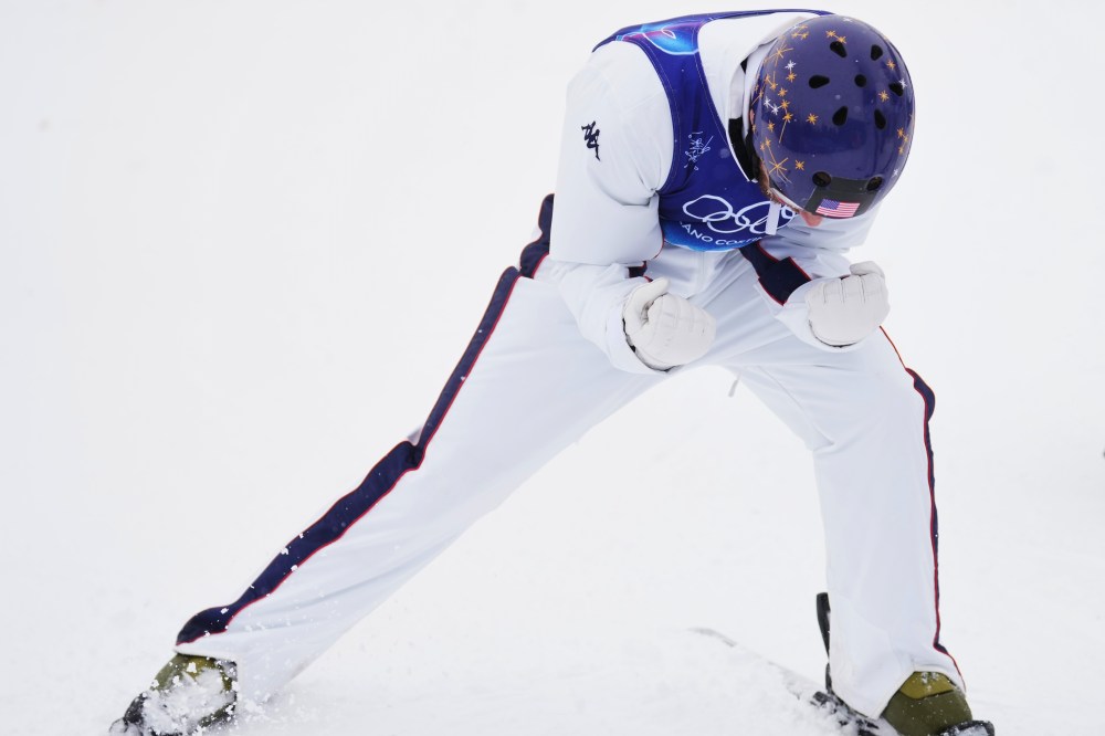 United States’ Christopher Lillis (5-3) celebrates during the freestyle skiing mixed team aerials final at the 2026 Winter Olympics, in Livigno, Italy, Saturday, Feb. 21, 2026. (AP Photo/Gregory Bull)