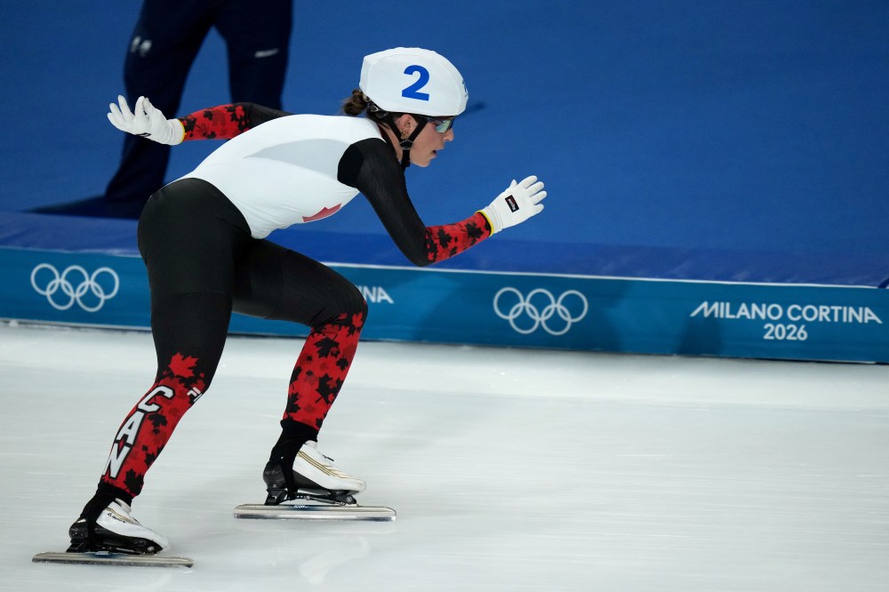 Canada’s Valerie Maltais (2) competes during the women’s mass start speedskating semifinals at the 2026 Winter Olympics, in Milan, Saturday, Feb. 21, 2026. THE CANADIAN PRESS/Darryl Dyck