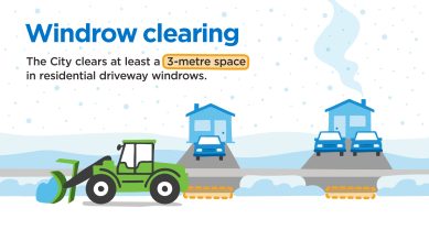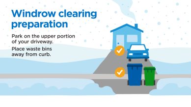 “There are simple things that residents can do to prepare for snow clearing and windrow clearing to make it safer and more efficient for our crews to work. First, do not park your vehicle on the road, sidewalk or lower portion of your driveway – doing so makes it difficult for our crews to plow the road and can prevent crews from clearing the sidewalk and windrow. It’s also important that there aren’t any obstacles left on or near the road, like sports equipment or garbage bins. If snow clearing is happening on your garbage collection day, we ask that you place your bins away from the curb so crews still have space to clear the windrow. We appreciate your patience and support. By working together, we can have a smooth snow-clearing season.” – Helen Noehammer, Director, Works Operations and Maintenance