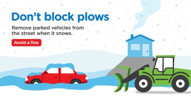 To make snow clearing safer and more efficient, the City has introduced a penalty of $150 for those who park their vehicles on the road when the City is plowing and declares a Citywide Winter Parking Restriction.