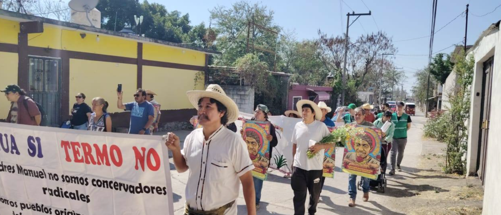El Sol de Cuautla reports: “To commemorate the anniversary of the death [of Samir Flores], a mass was held at the activist’s home and later a march that concluded at the community’s primary school, in the center of Amilcingo. There they placed a wreath at the foot of the bust that is located in the campus. The march continued to the community cemetery, where the remains of Flores Soberanes rest.”