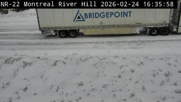 It appears that this CMV is stuck going up the Montreal River Hill. It is visible at 17:45 and you can see that traffic is going around it. It first showed at 16:55.