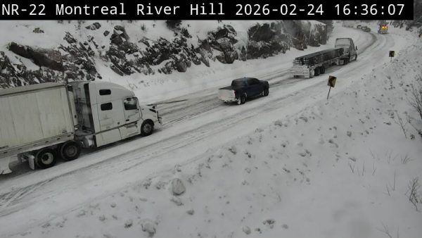 Looks like most of traffic has cleared this section of the Montreal River Hill. It is unknown if there are other vehicles stuck further up the hill. The highway remains closed.