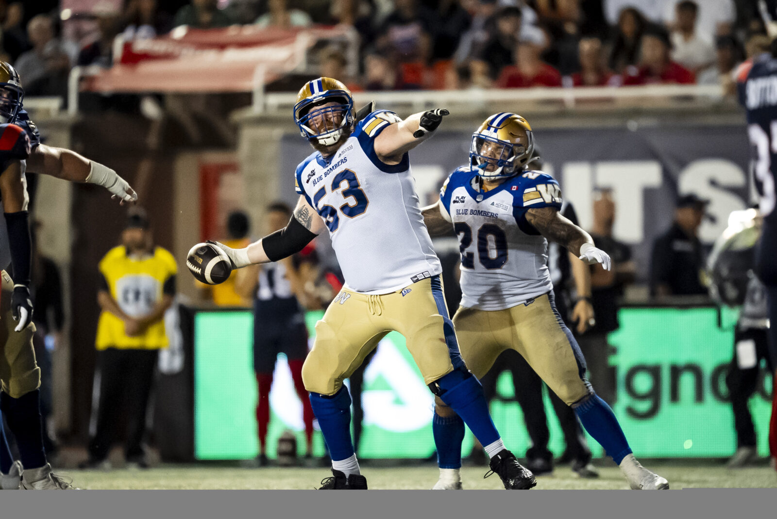 It was midway through the second quarter of Winnipeg’s loss to the Montreal Alouettes in the Canadian Football League’s Eastern Semi-Final when quarterback Zach Collaros was sacked and fumbled, with the veteran right guard then pouncing on the loose ball just as he was nailed in the back by a defender.