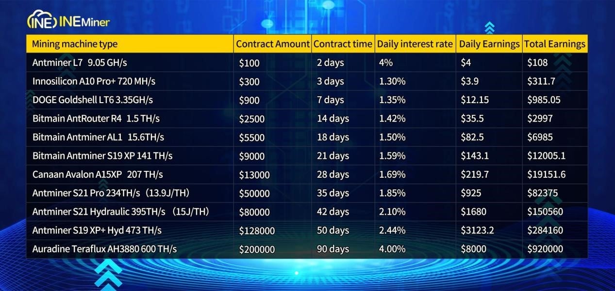 INEMINER revolutionary cloud mining innovation ushers in a new era of cloud mining, lowering barriers to entry and minimizing risk. It is the top choice for mining enthusiasts.