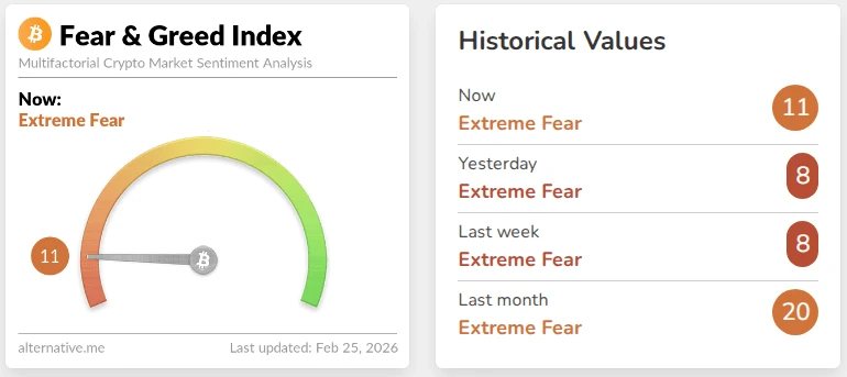 Reports note the Crypto Fear & Greed Index recently hit a low of 11, one of the weakest readings this year. That kind of reading has shown up near big turns before, but it is not a guarantee of an instant rebound.