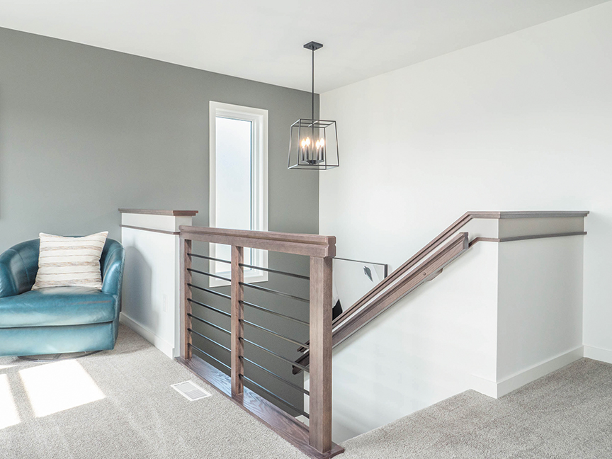 “It’s a very crisp, clean-looking house with new modern features that are popular on Pinterest and that people are always looking at. We even changed our wrought-iron rail spindles. Instead of going vertically, they’re horizontal in this house. It gives you a totally different look — not that the verticals aren’t still popular, but the horizontal ones are more clean-looking. It totally changes the feel and look of the house.”