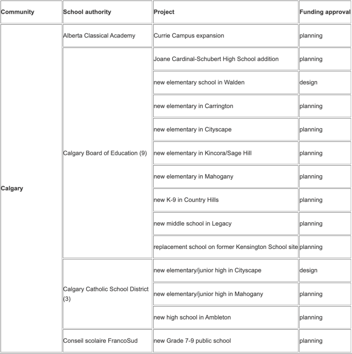 “These projects will help ensure that every child has a space to engage and thrive in Alberta’s education system,” the release reads.