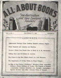 In Australia, All About Books, launched in 1928, was produced not by a literary critic, but by a key figure in the book trade, bookseller and editor D.W. Thorpe. Its aim was to “sift the grains of wheat out of so much chaff” – sort out the good books from the so many new books. Its readers were “ordinary readers”, not part of the literary community but eager readers, whether in business or the home, keen to know the best of the latest books.