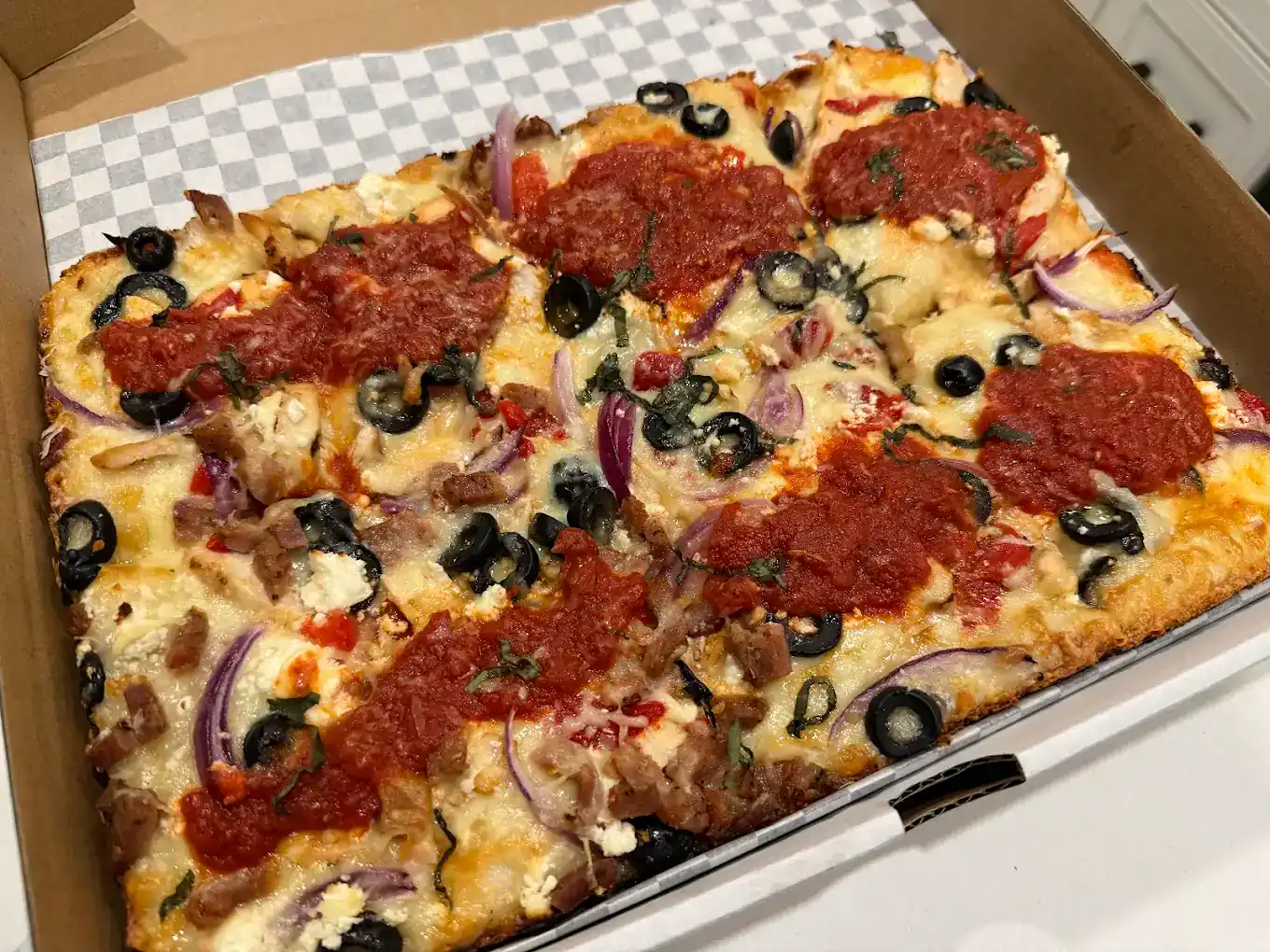 The venue offers an elevated social atmosphere, with a menu featuring Detroit-style pizzas, handcrafted burgers, wings, tacos, quesadillas and pastas.
