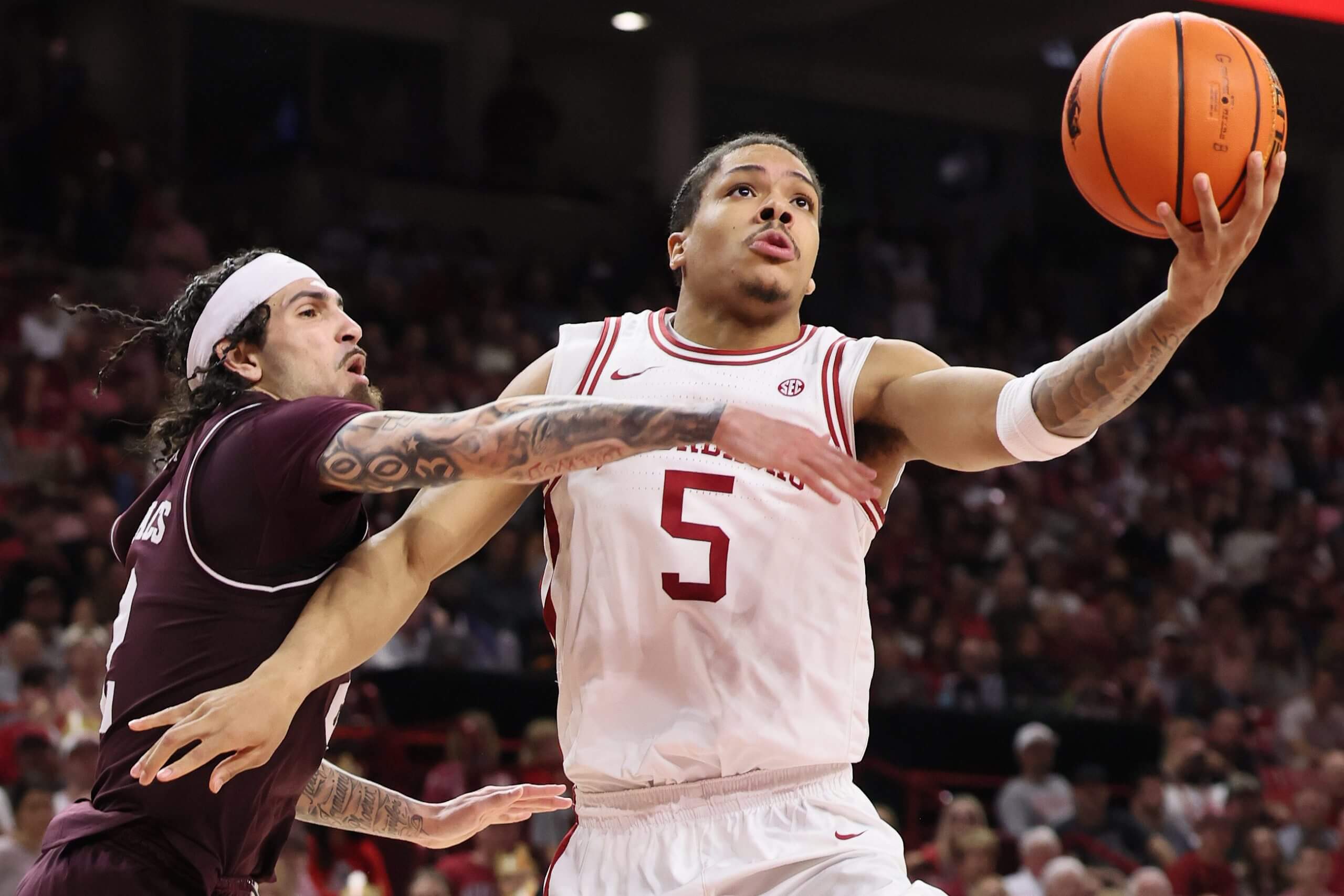 Philon has taken advantage of his extra year, returning to college and helping himself immensely while stepping into Alabama’s lead guard role. He’s averaging 21.4 points and nearly five assists per game while shooting 51 percent from the field, 38.6 percent from 3 and 78 percent from the foul line. Though his defense has taken a bit of a step back from last season, when he was terrific while playing next to Mark Sears and only sharing the on-ball responsibilities, he has been acceptable on that end.