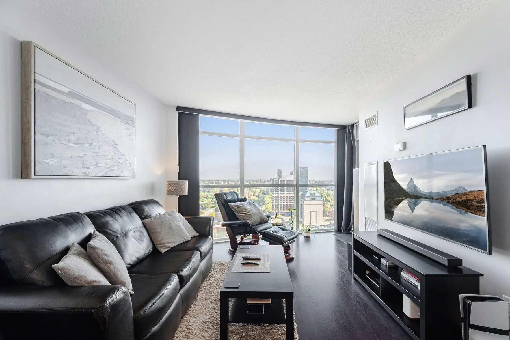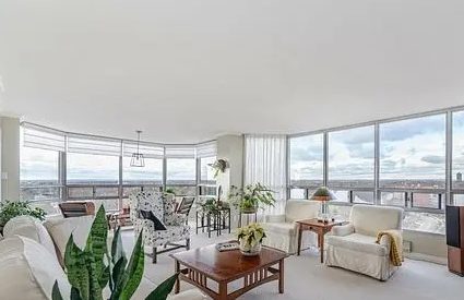 This upgraded two-bedroom, two-bathroom corner suite has large windows in all rooms with a panoramic view. The condo features an open-concept living, dining and sitting room and a kitchen with a sub-zero fridge and high-end appliances. The main bedroom has a three-piece ensuite, while the second bedroom or office can be accessed from the hall or sitting area.