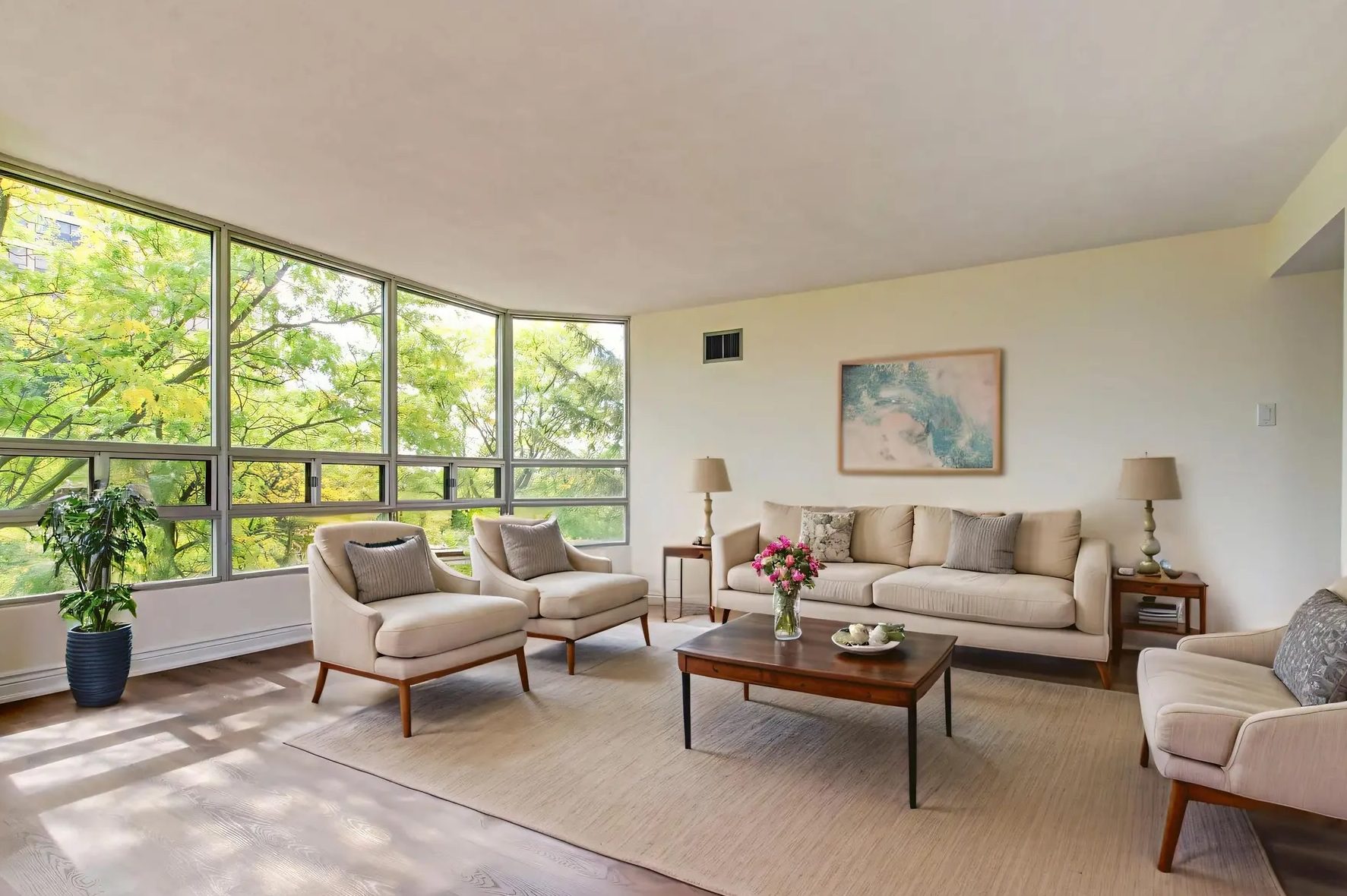 This two-bedroom, two-bathroom unit has been updated with a new kitchen featuring quartz counters, under-mounted lighting, stainless steel appliances, pot lights and tile floor. Both bathrooms have new vanities, sinks, faucets, mirrors and toilets, with new doors and hardware in the primary bedroom, primary bath, main bath, laundry and second bedroom. Building amenities include an indoor pool, sauna, party room with kitchen, gym and hobby room.