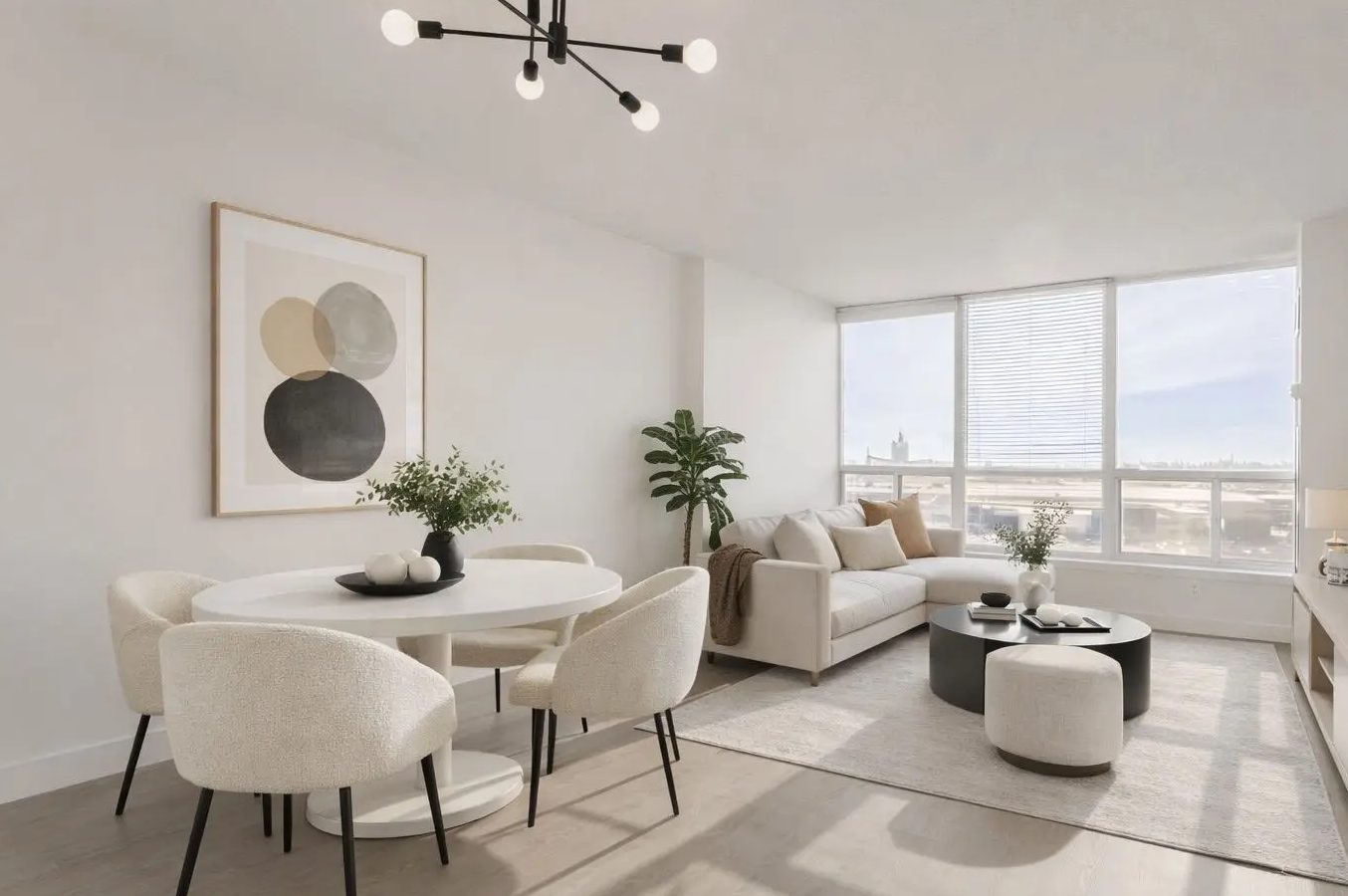 This one-bedroom, one bathroom unit features floor to ceiling windows and upgraded quartz countertops in both the kitchen and bathroom, complete with under mount sinks and new modern faucets. The condo has newly installed vinyl flooring and baseboards throughout, and an open-concept layout.